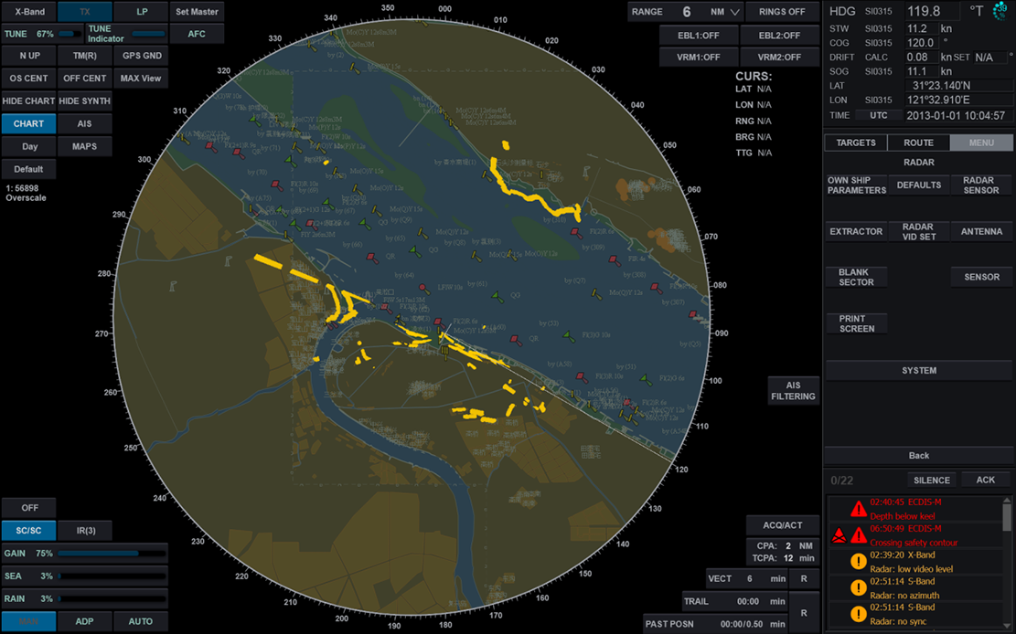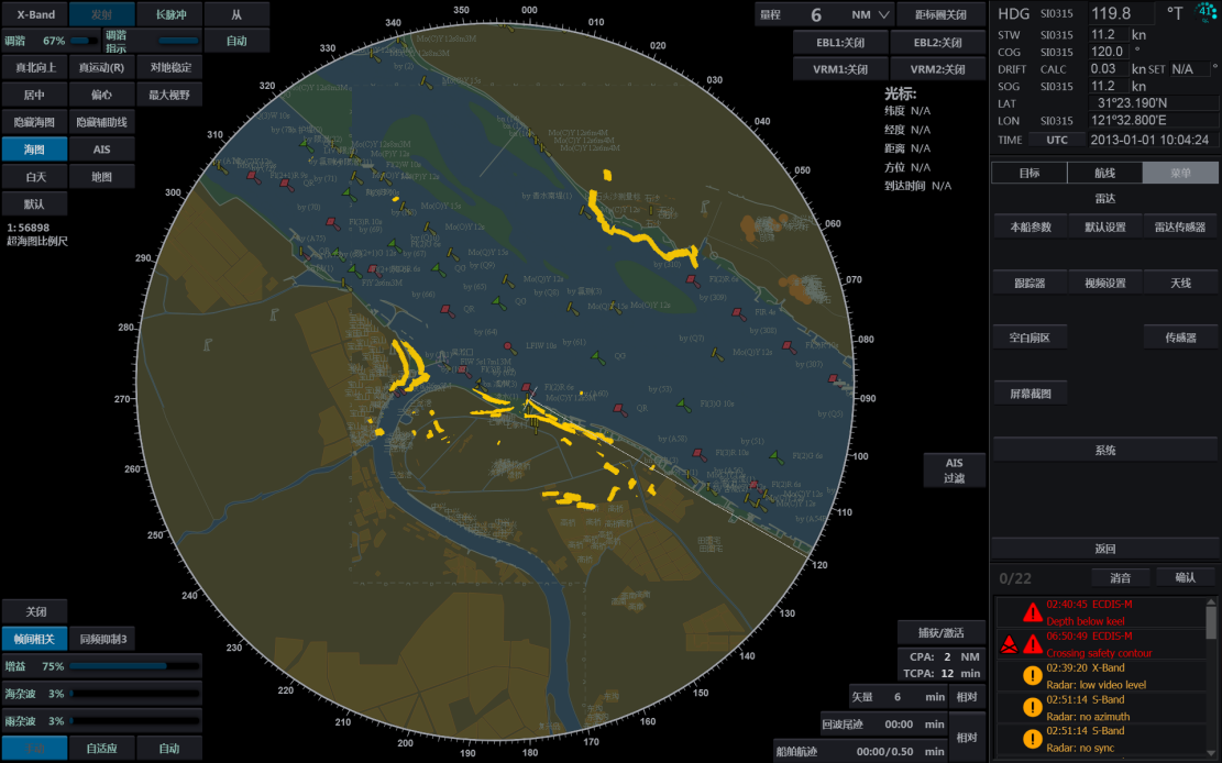 ● 通過預設碰撞參數(shù)(例如CPA/TCPA),自動識別危險目標并給出報警